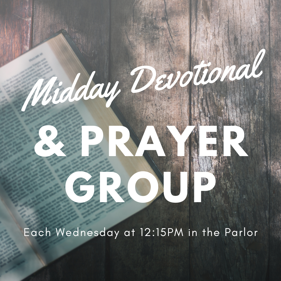 Join us at 12:15PM in the Parlor on Wednesdays for a 30-minute devotional and prayer group meeting.